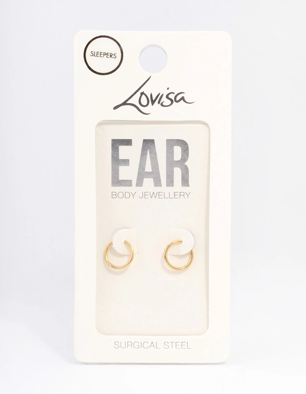 Gold Plated Surgical Steel Sleeper Earrings 8mm