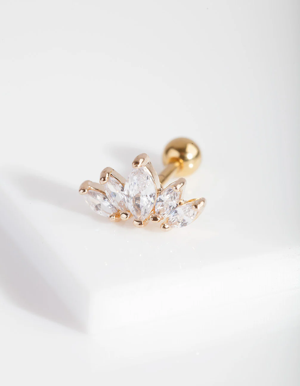 Gold Surgical Steel Cubic Zirconia Navette Fan Barbell Earring