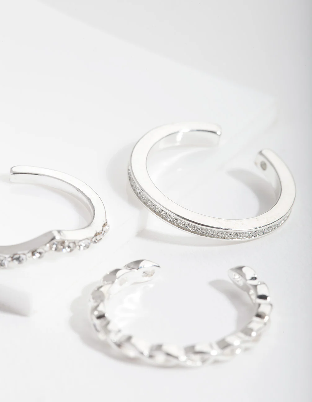 Toe rings are the perfect accessory if you like the beach and soaking up the sun! This pack comes with 3 adjustable open toe rings in a diamante and ridged silver-toned design. Stylish from head to toe!