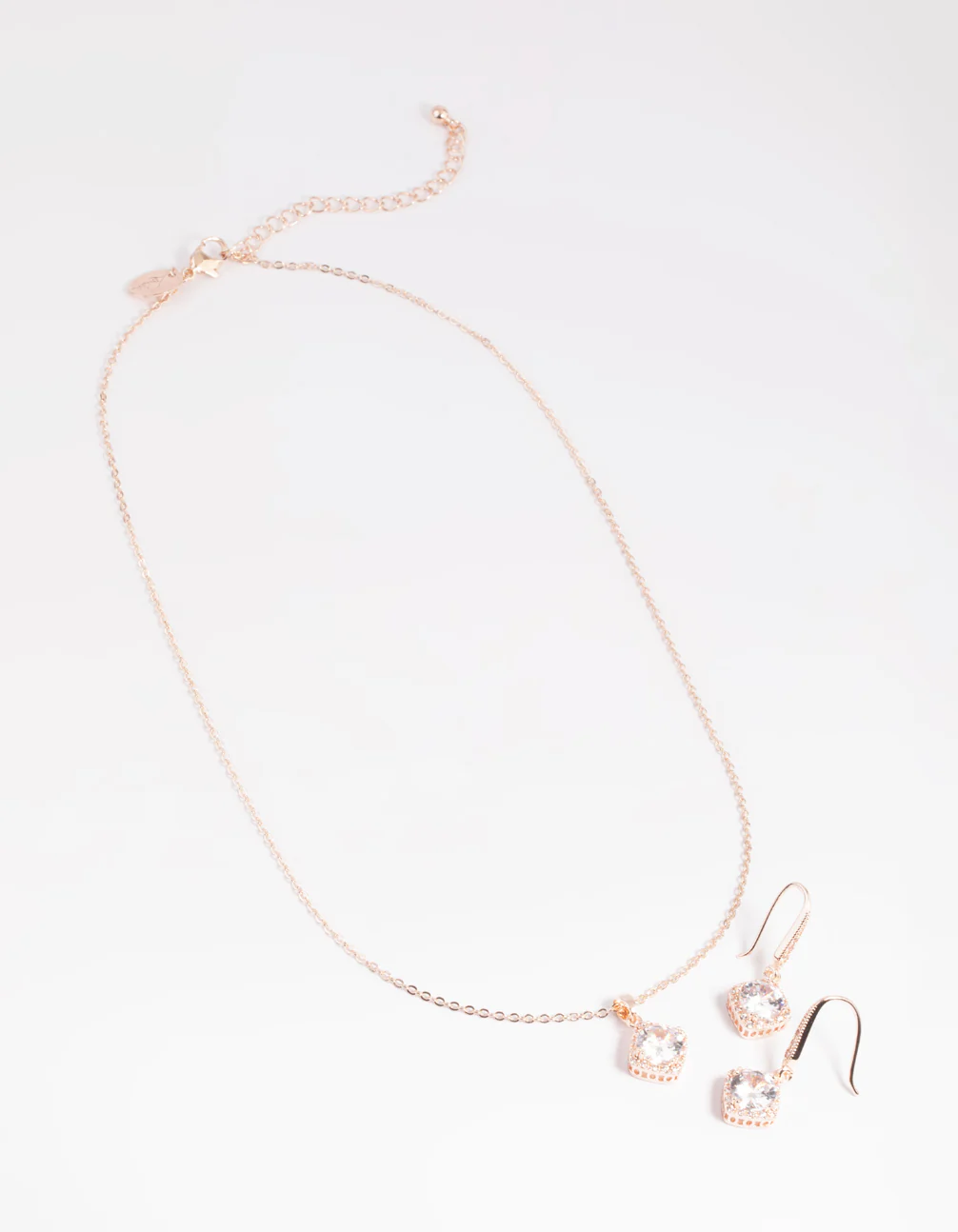 Rose Gold Cubic Zirconia Cushion Necklace & Earrings Set