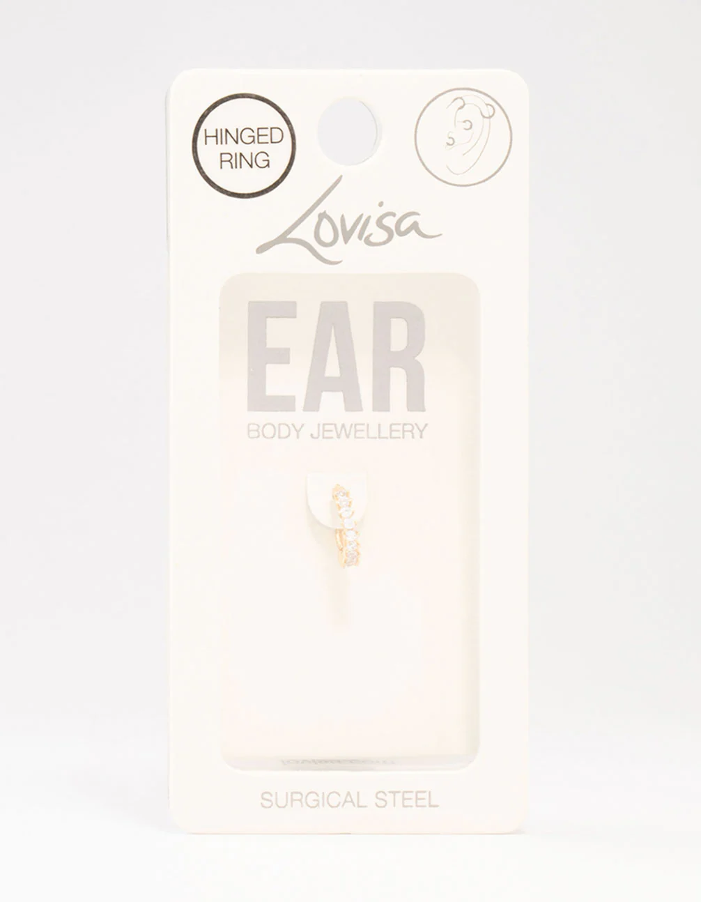 Gold Plated Surgical Steel Half Set Cubic Zirconia Clicker Ring
