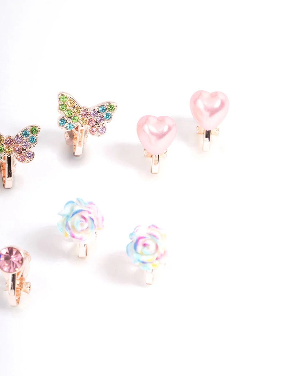 Kids Ombre Rose Clip On Earrings 5-Pack