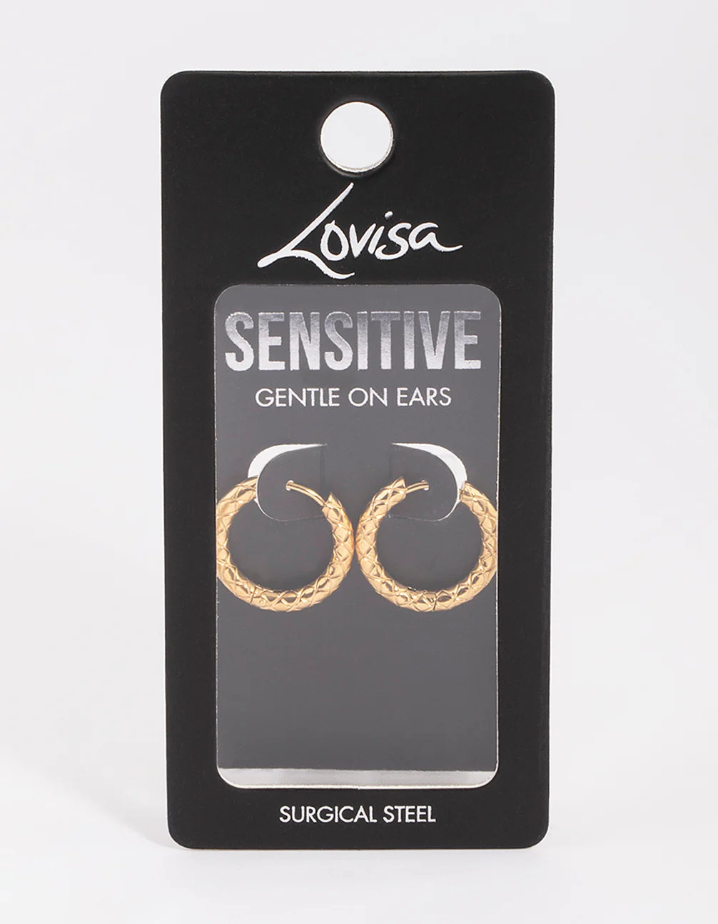 Style these scaled, gold plated surgical steel hoop earrings with pieces from our Boutique Collection for the ultimate it-girl look.