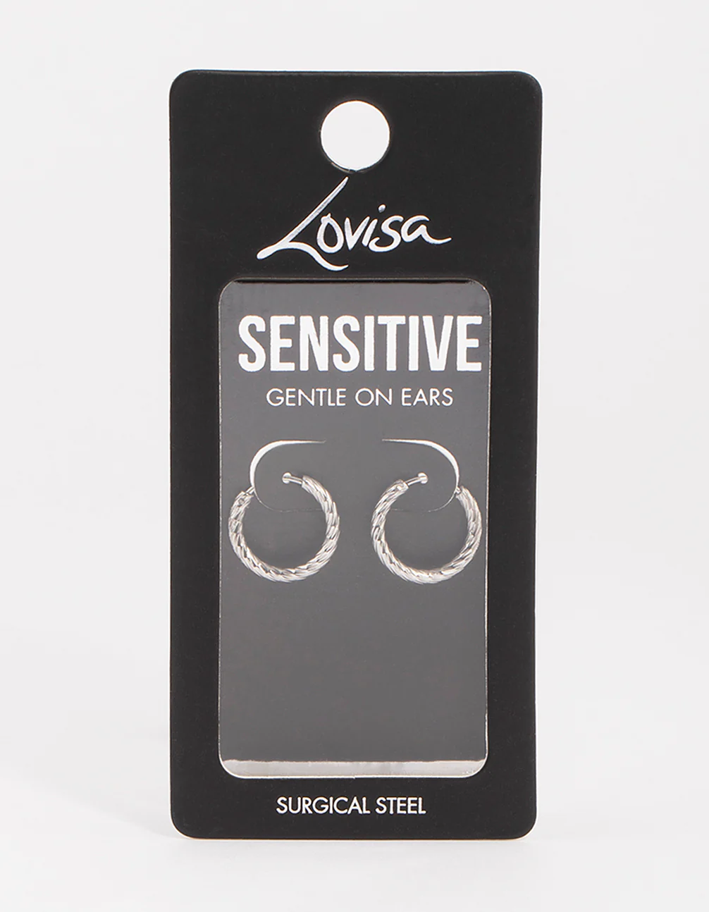 Style these twisted, surgical steel hoop earrings with a textured pendant necklace for an on-trend look.