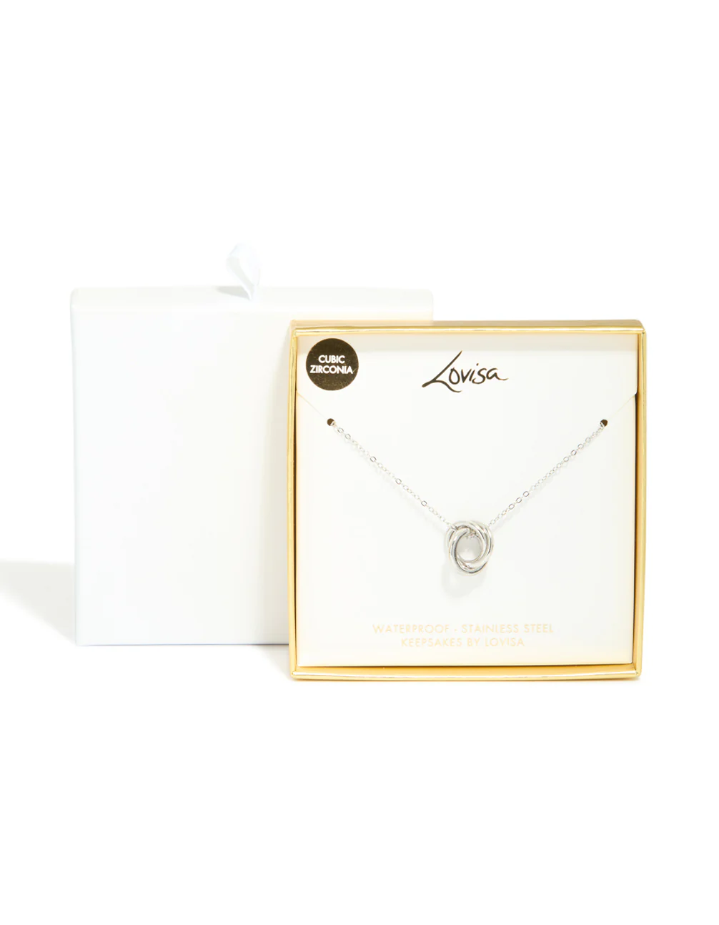 Shine all day (and night) in this Waterproof Stainless Steel Cubic Zirconia Triple Circle Link Necklace. This chic necklace features a modern triple circle link design with shimmering cubic zirconia crystals for a subtle glam moment. Made from stainless steel, it’s a versatile everyday necklace you can wear to brunch, uni or a night out. Style it with a simple tee and jeans for an effortless look, or layer it with other delicate necklaces for a stacked jewellery vibe. A go-to stainless steel link necklace for anyone who loves sleek, minimalist jewellery with a touch of sparkle.