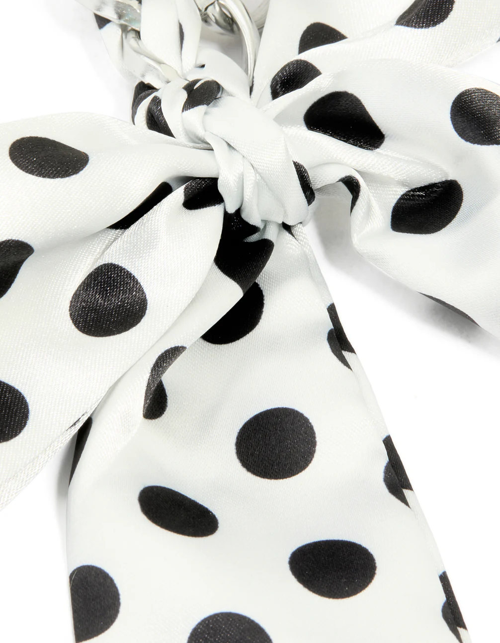 White & Black Polka Dot Fabric Bow Key Chain